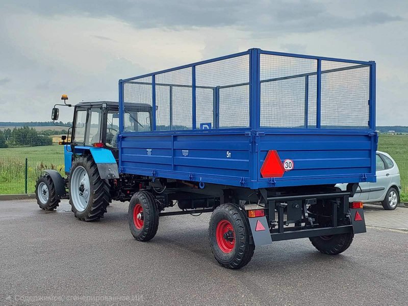 Прицеп предназначен для транспортировки различных строительных грузов, асфальта, бетонных смесей и перевозки сельскохозяйственных грузов по всем видам дорог и в полевых условиях по стерне и снежному покрову до 0,3м. с выгрузкой назад и боковые стороны.